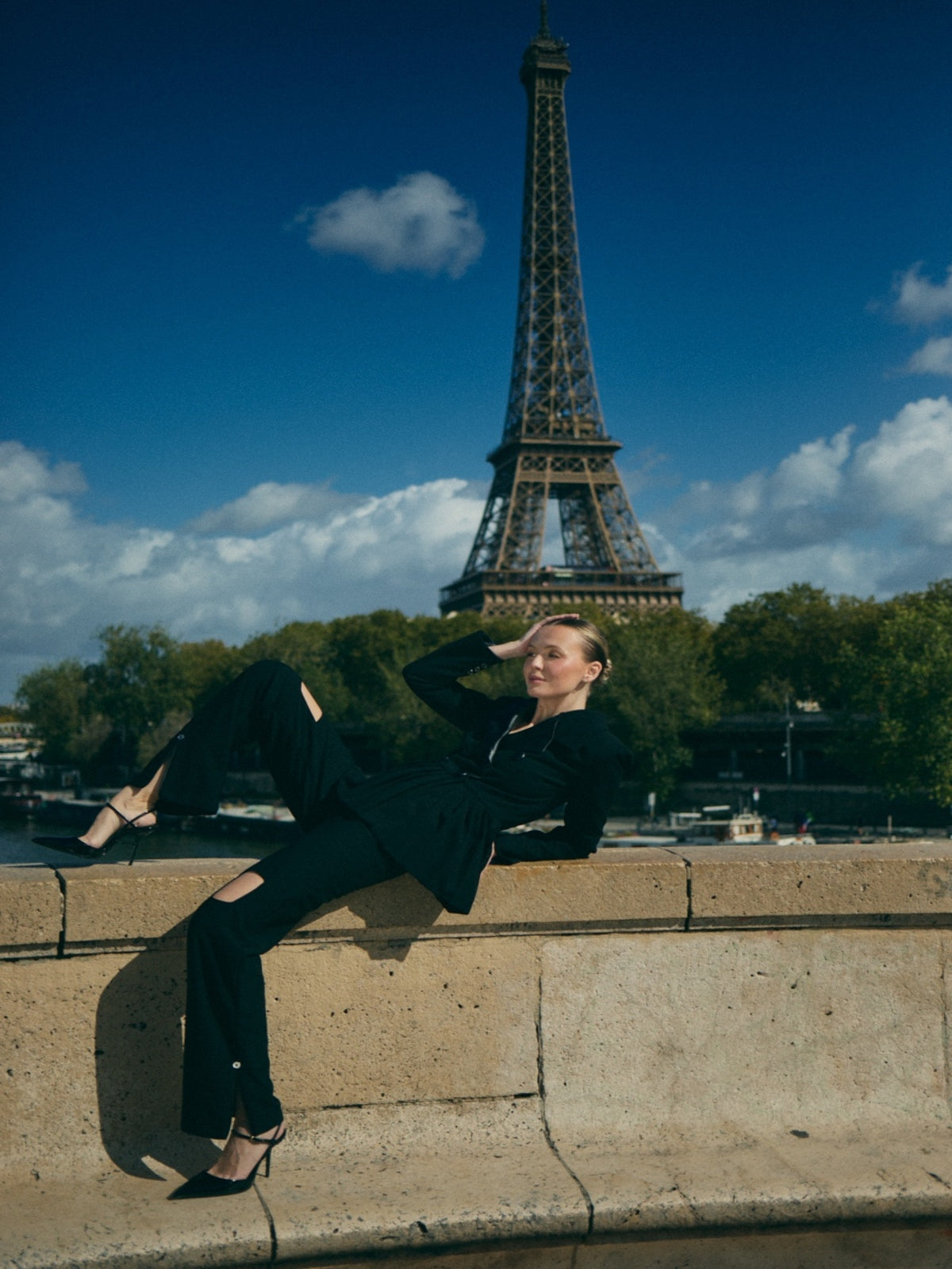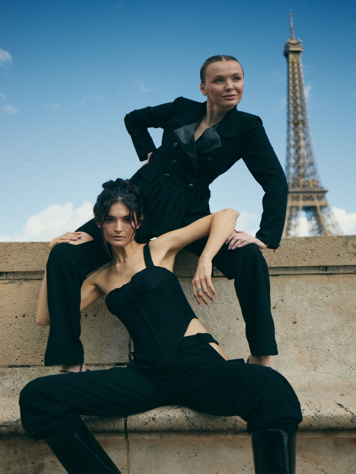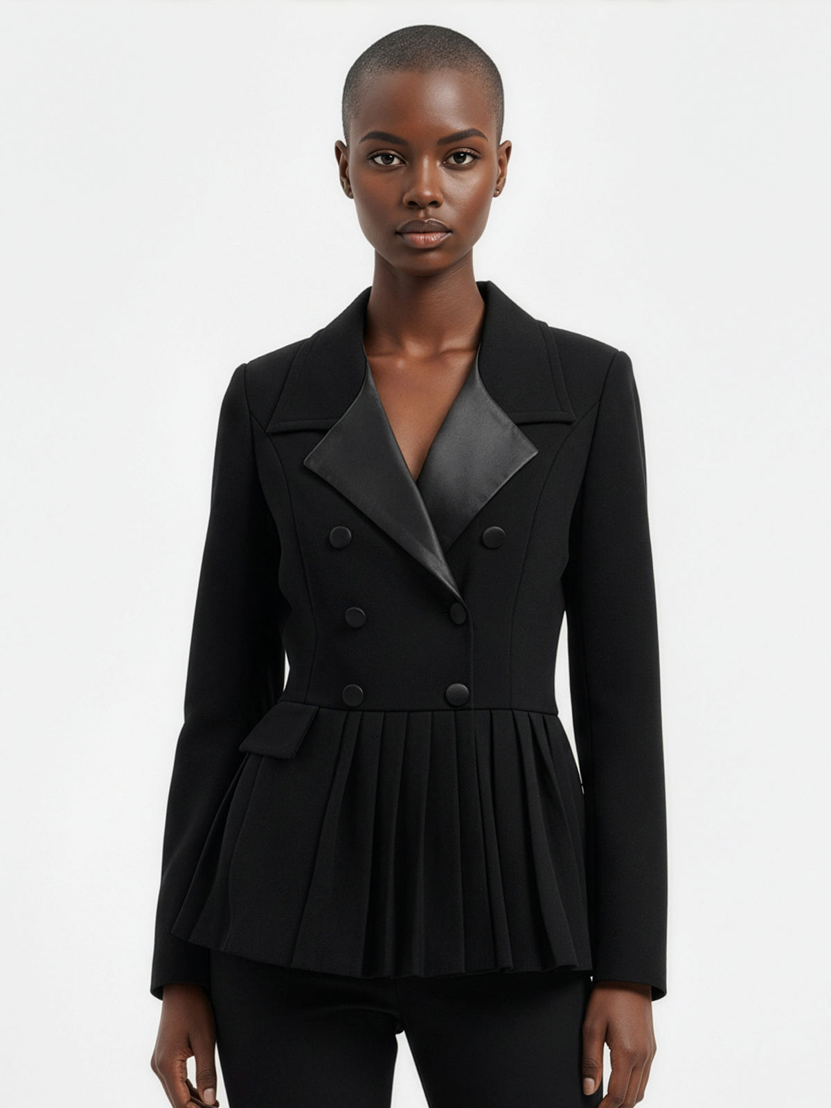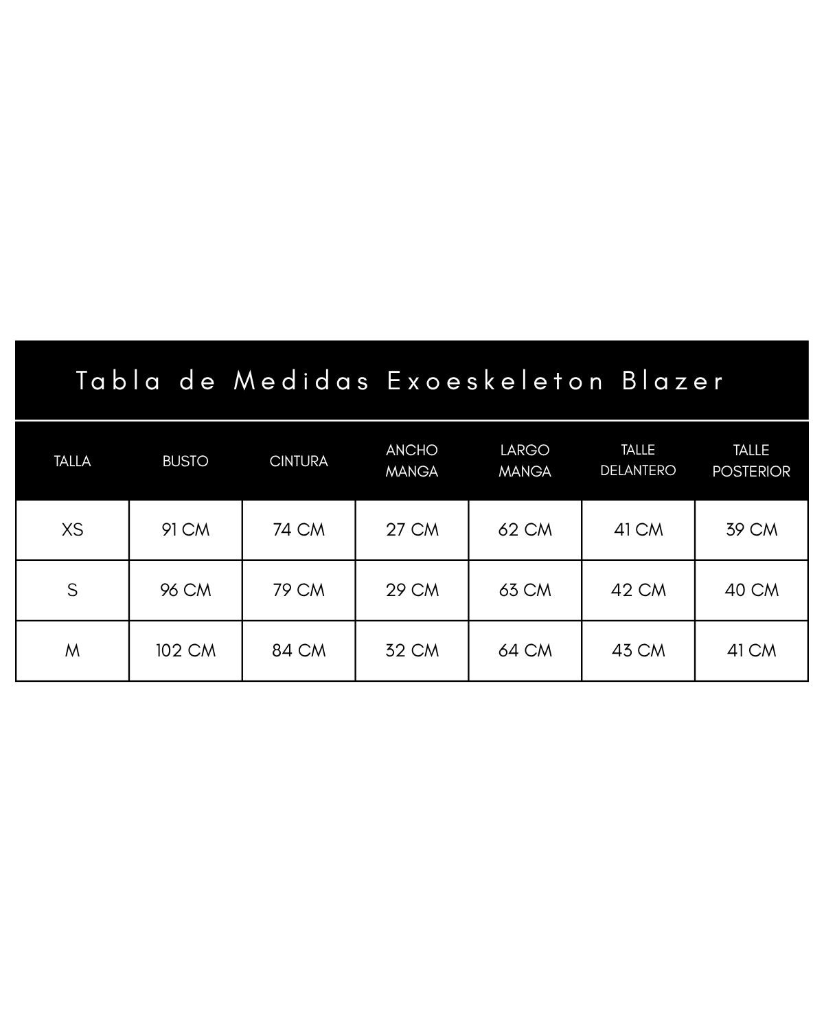 Una armadura elegante que habita el cuerpo. El Exoskeleton Blazer equilibra fuerza y vulnerabilidad a través de una estructura frontal precisa y una apertura posterior que revela la espalda con sutileza. Su sobrefalda plisada aporta movimiento escultural, mientras los ribetes en PU sellan una presencia poderosa y contenida.